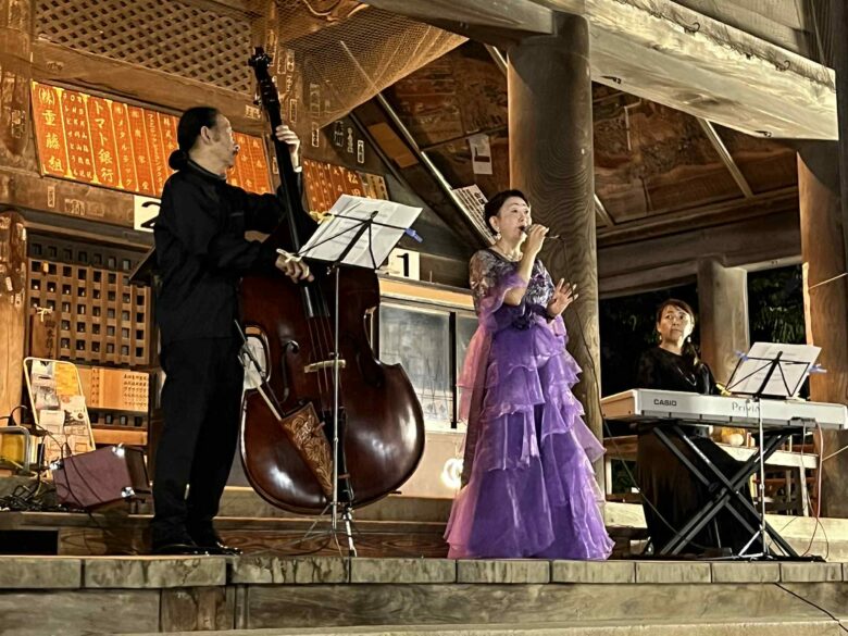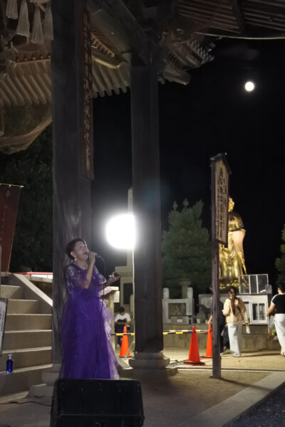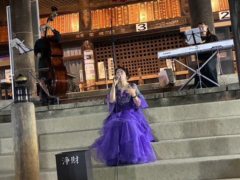 お客様も大盛りあがり、お堂の荘厳な響きの中で歌わせていただきました。